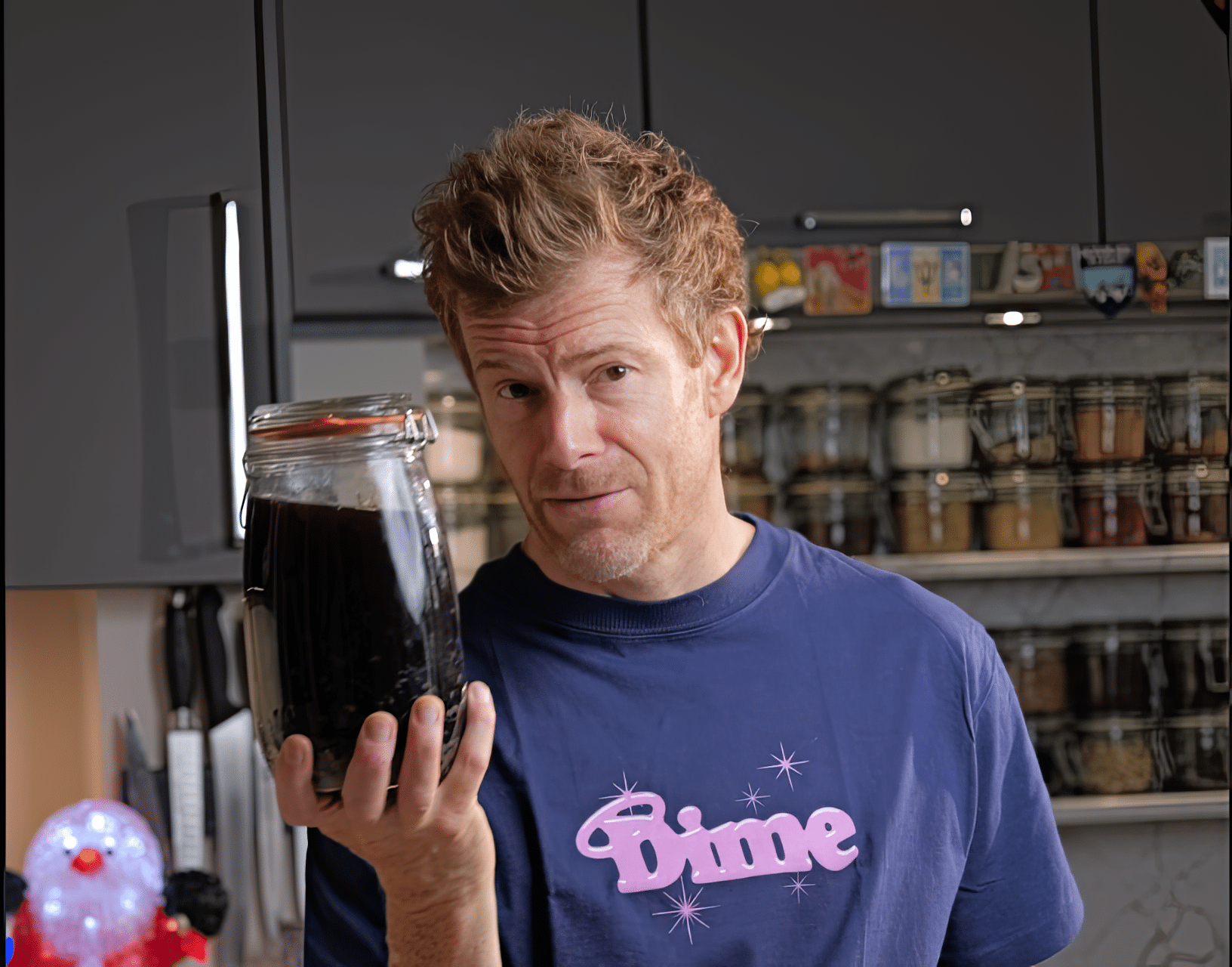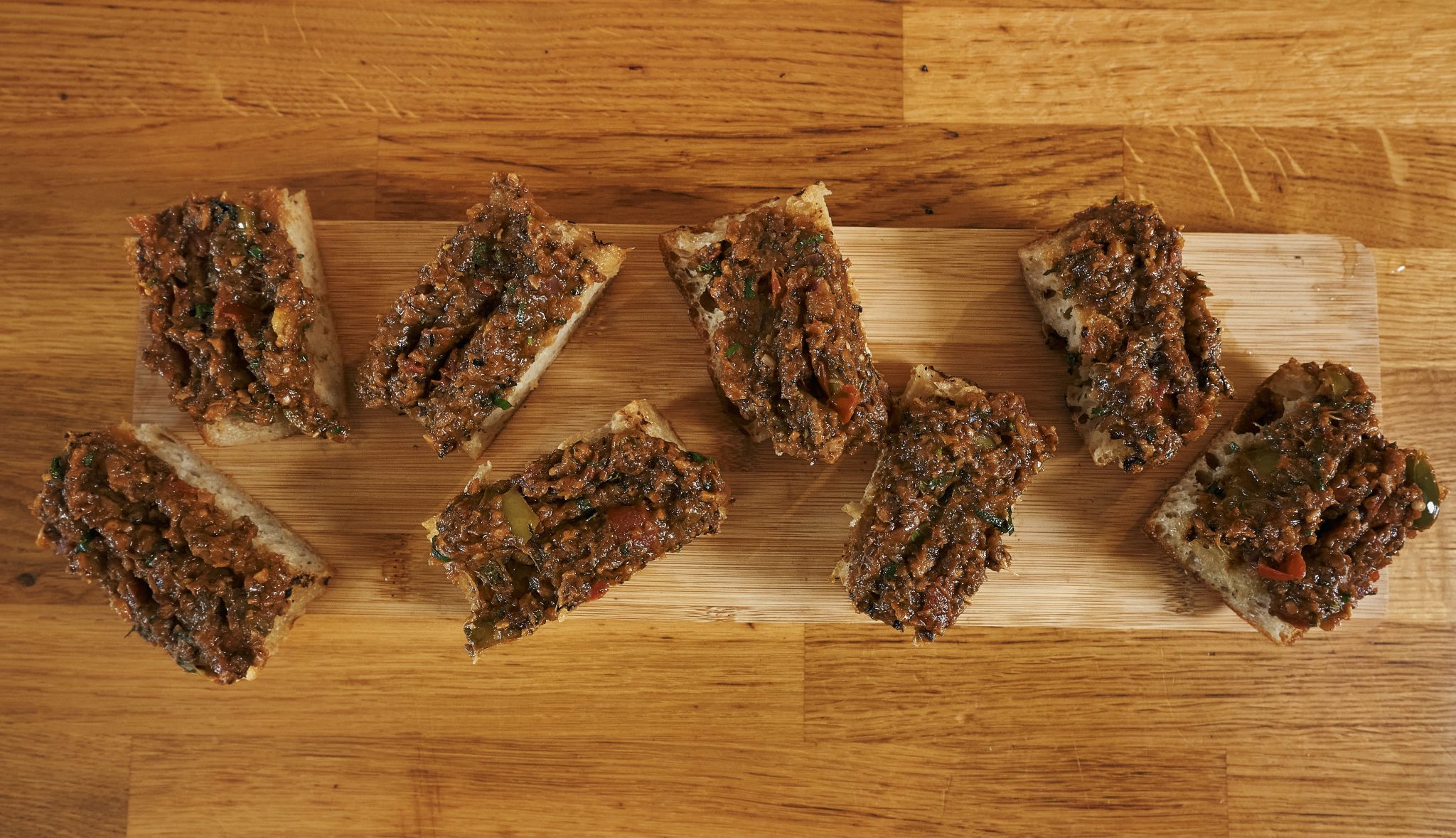 Dark rye bread with pickled red onion, black pudding & prune ketchup