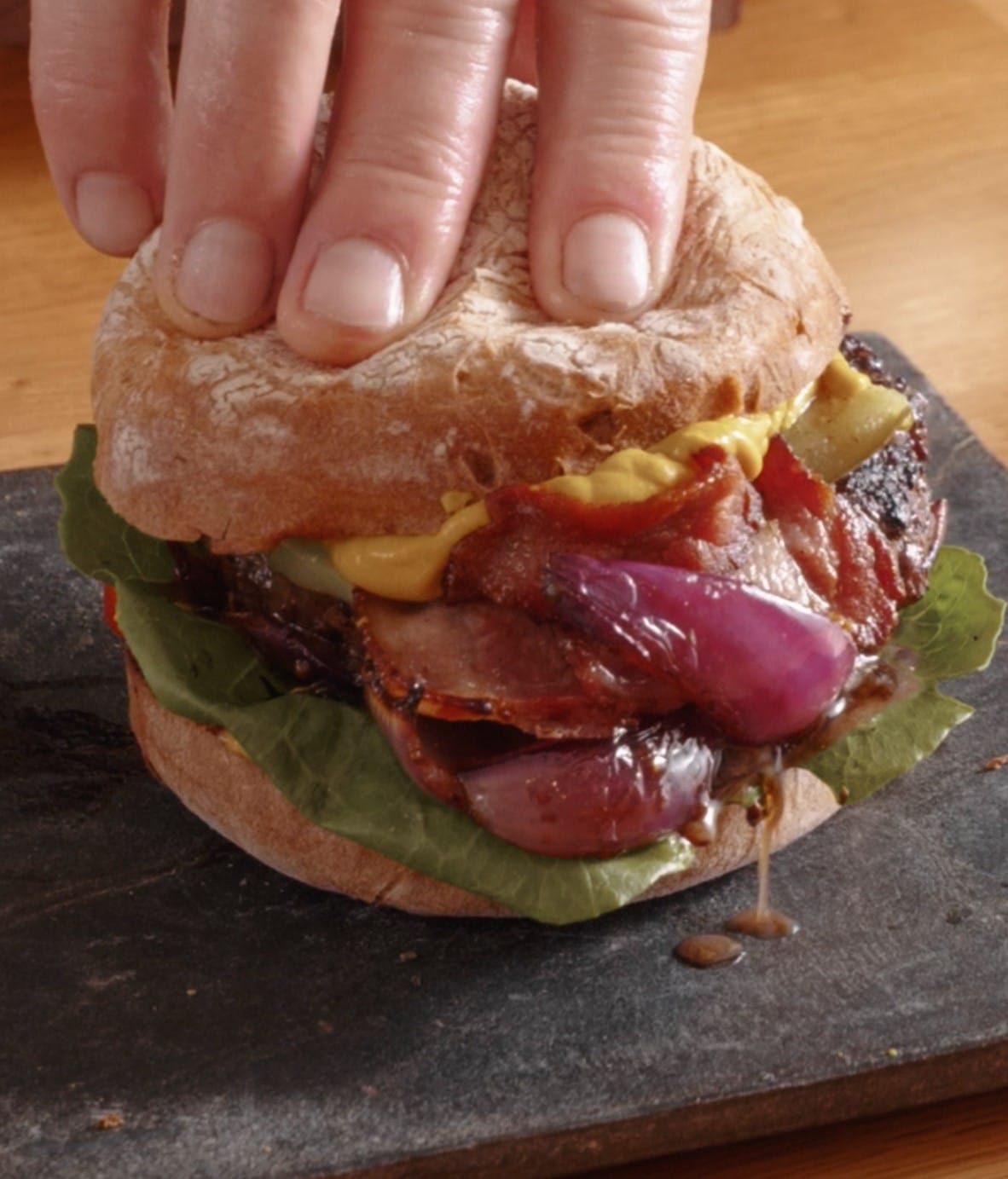 GRILLED CHICKEN, BACON, WILD GARLIC PESTO, AND TOM’S PICKLE SANDWHICH