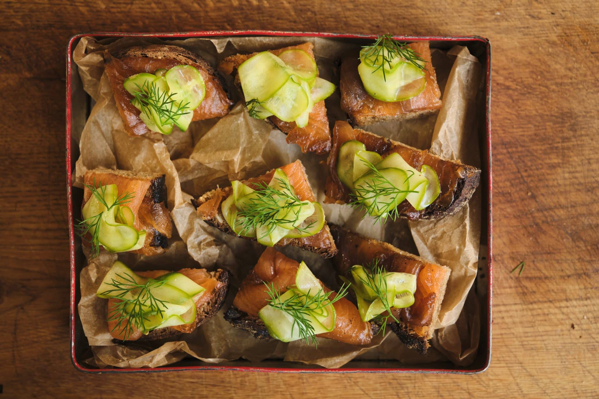 Treacle Cured Salmon, Sour Cream & Dill Pickles