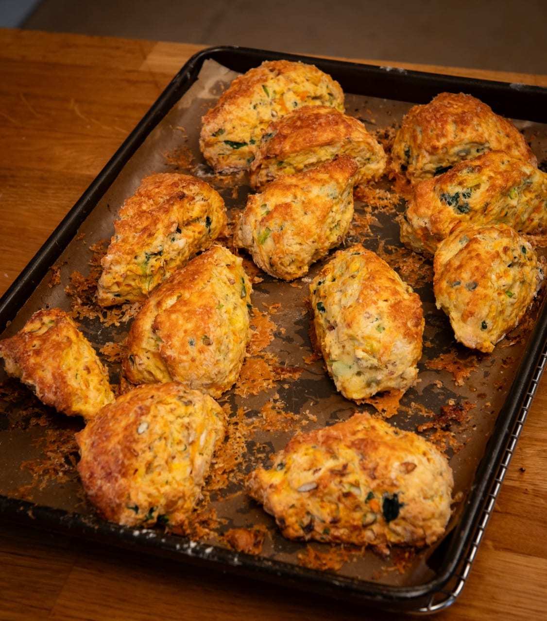 Carrot, spinach & pumpkin seed scones