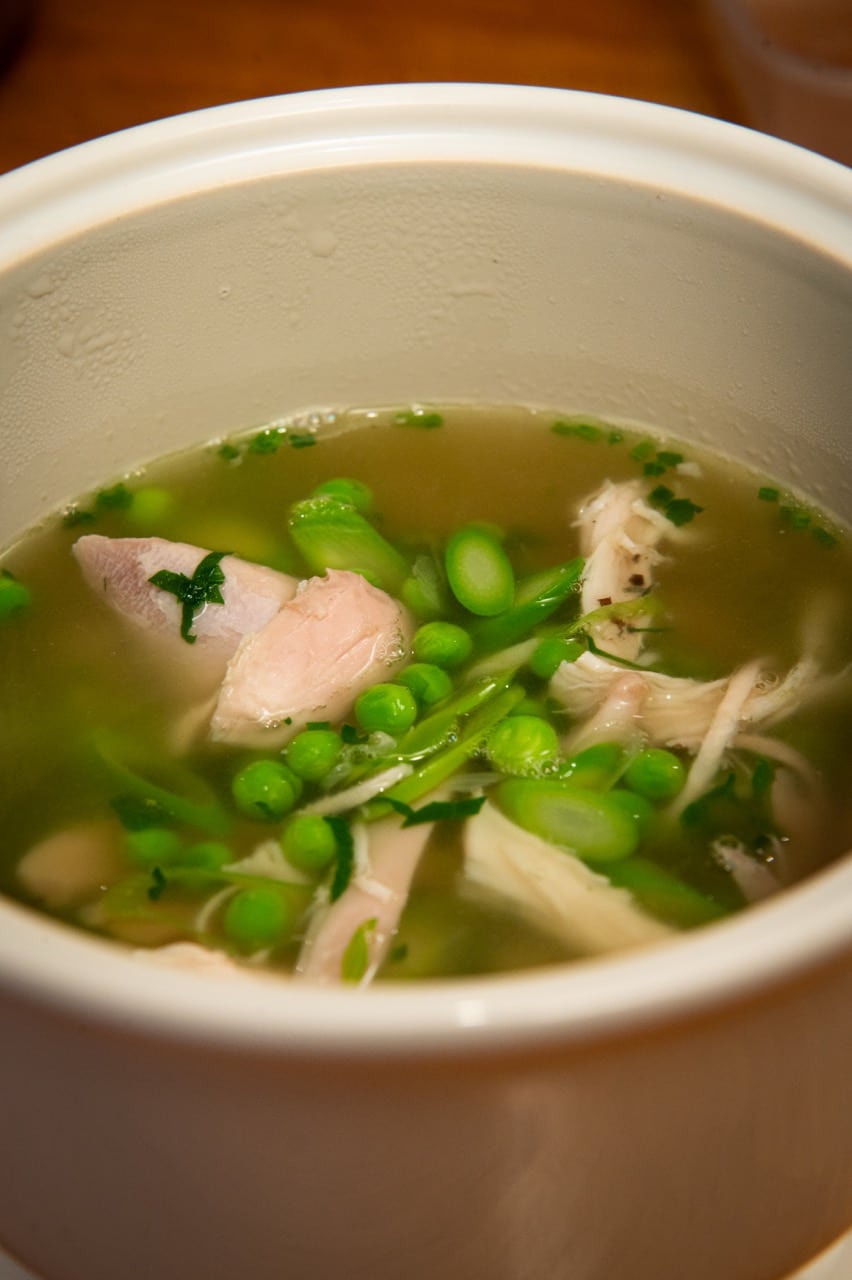 Chicken broth, peas, asparagus