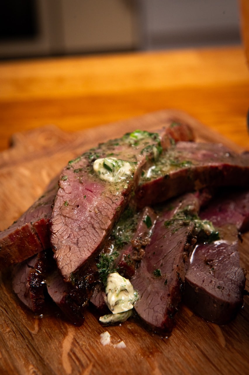 Steak rib eye, mixed herb butter, chips & herb salt